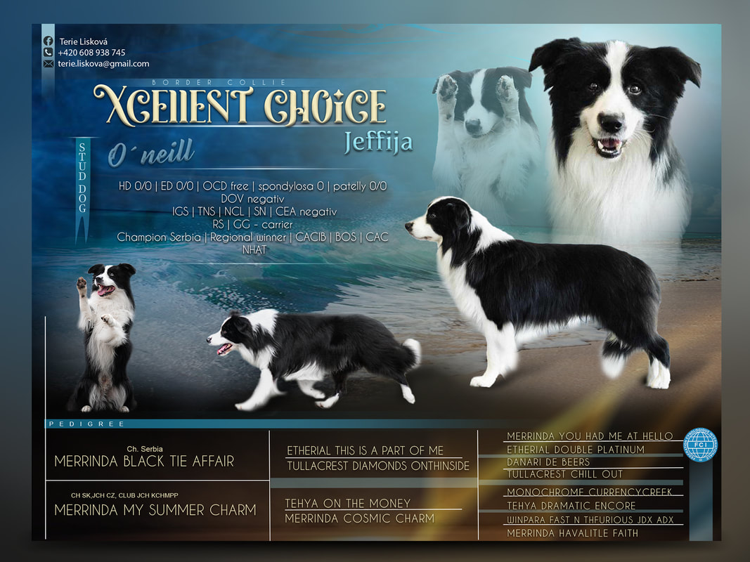 Milý šťastný psík jak mu říká panička Happy Dog . Oňka je velice kontaktní, milující pejsek. Zbožňuje lidi, děti se kterými dokáže ležet hodiny na zemi a mazlit se, hrát si s nima je něžný. Máme v plánu i zaměřit se na canisterapii neboť jeho povaha je k tomu stvořena. Na výstavě miluje každého rozhodčího vždycky se cely rozvlní štěstím jak na něj šahnou myslela jsem ze z toho vyroste, ale nestalo se . Při práci chce být ten nejlepší, často vymysli blbosti aby se mi zavděčil novým trikem. Při agility je trosku hlučnejsí neboť tak dává na jevo svoje štěstí, ale je snažívý. Při Paseni je soustředěny tam nevydá ani hlásku a snaží se dobre vykonavat svou práci. Pro co Oneilek žije je tahání, nasadime postroj a jde se běhat, na kolo či v zimě na splitboard. Oneilek rad i odopociva semnou na gauci a když není co zvládne to semnou i cely den, není to prudici Kolie vi kdy se odpočívá a vi kdy se pracuje. Je to proste parťák do nepohody a věřím ze svou skvělou milující povahu předá i svým potomkům . Bez problémový je zvířátkům i psům (samce ) miluje je.