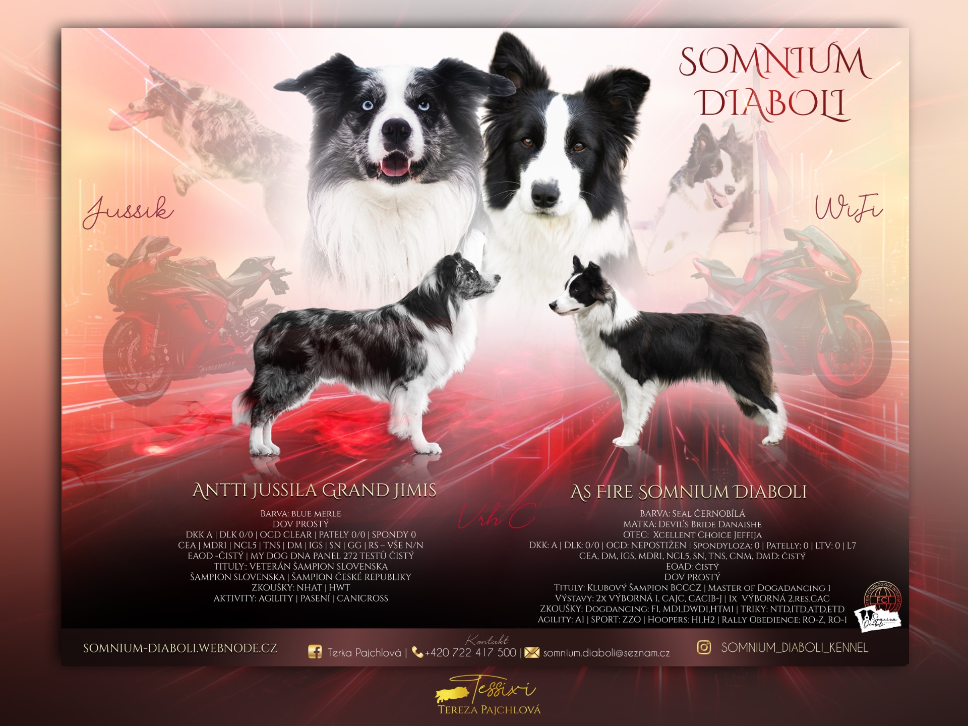Z tohoto vrhu očekáváme štěňátka s výrazným will to please, silným drivem a velkou chutí do práce. Půjde o aktivní a učenlivé jedince vhodné především pro sport, ale i pro aktivní rodiny, které se psovi chtějí opravdu věnovat.